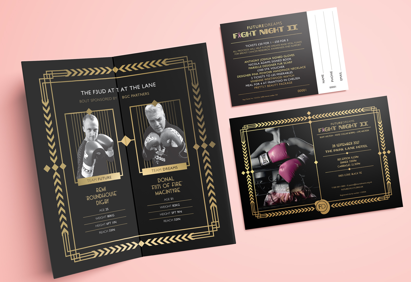 A white collar boxing fundraising event for Future Dreams at London’s Park Lane Hotel.